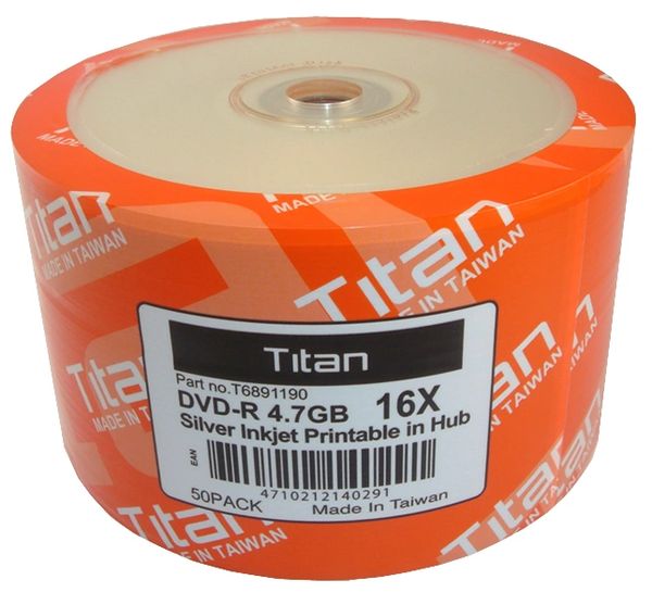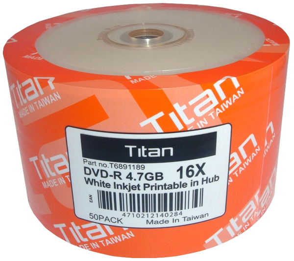 DVD-R 16X 120 Min, White Inkjet Printable in Hub, Metalized Hub