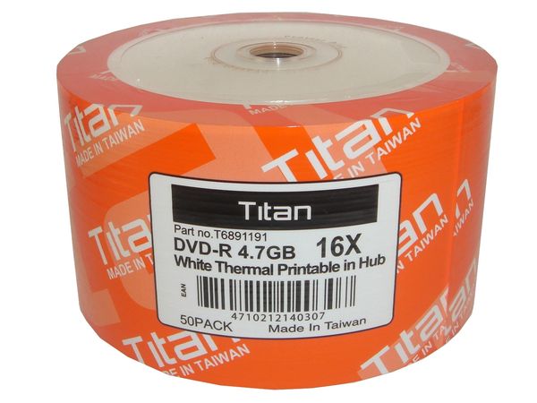 DVD-R 16X 120 Min, White Thermal Printable in Hub, Metalized Hub
